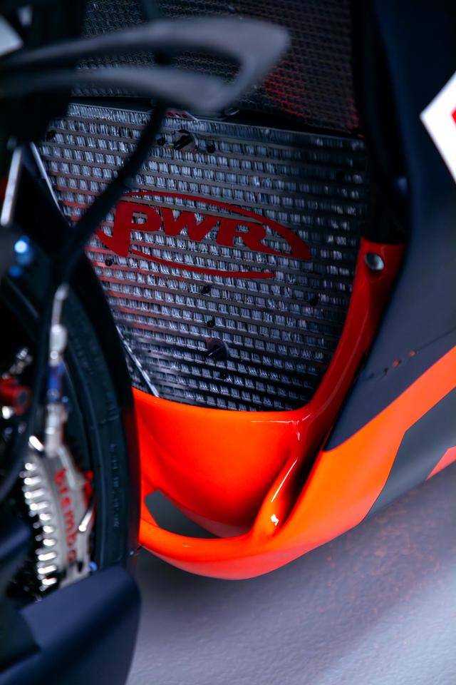 KTM RC16 搭載一副 V 型四氣缸、DOHC每汽缸四汽閥的發(fā)動機(jī),缸徑、行程為 81 mm x 48.5 mm(FIM 的賽事規(guī)則,MotoGP 級別賽車的最大缸徑為 81 mm),官方公布的最大馬力輸出為超過了 260 匹。車體方面,采用一副混合結(jié)構(gòu)的車架(最初的 2016 - 2019 RC16 采用鋼管編織式的車架),WP 的懸掛系統(tǒng),Brembo布雷博的制動系統(tǒng)。而持續(xù)獲得更新的空氣動力學(xué)套件,無疑是每一個新賽季里、RC16 工廠賽車在外部較為顯著的變化之處。
