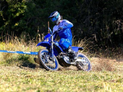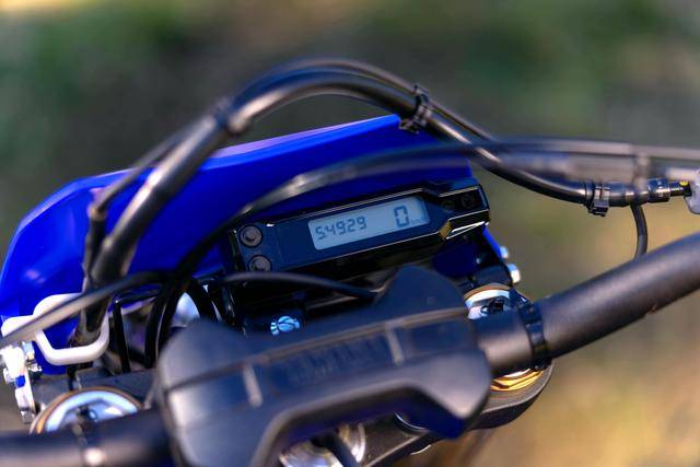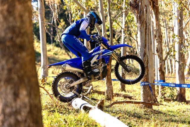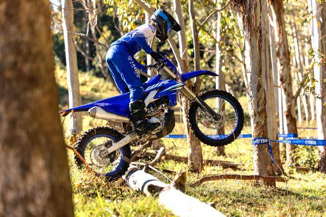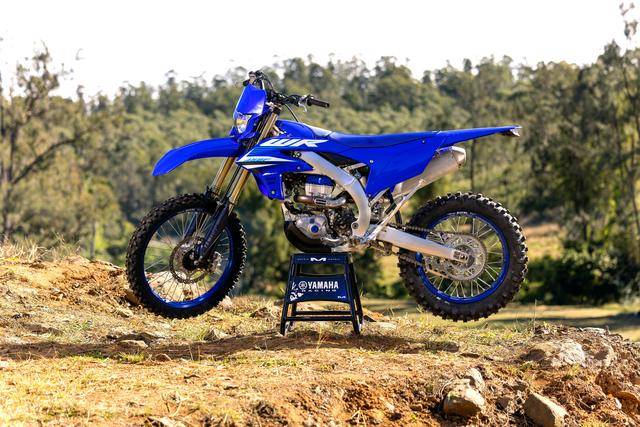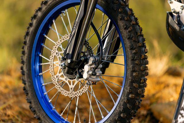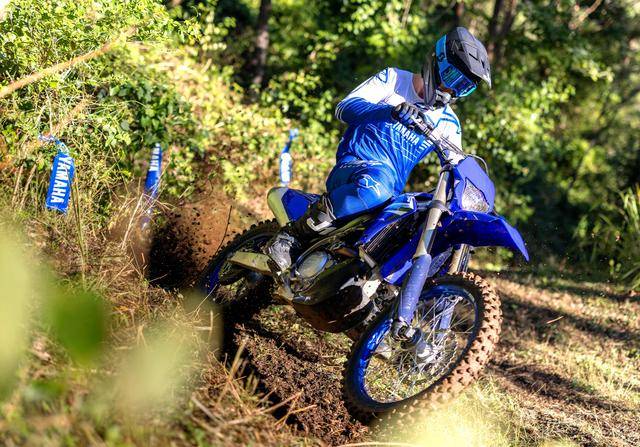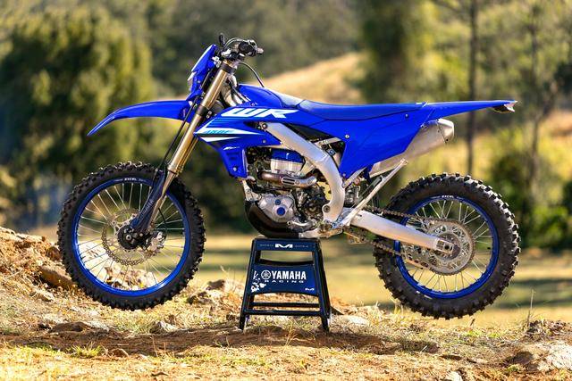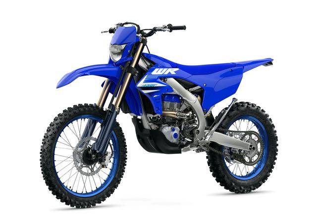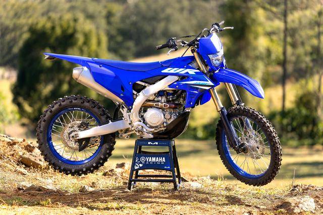 現(xiàn)行的 2024 WR450F 是 2023 年才發(fā)布的換代車型,搭載一副與 MX 市售賽車 YZ450F 同平臺的水冷四沖程反向后傾單氣缸、DOHC 四氣閥的發(fā)動機,缸徑、行程仍保持為 97 mm x 60.8 mm,壓縮比13:1,排氣量 450 cc,五檔的變速齒輪箱。廠方未有公布此類車型的峰值馬力輸出,但估計普遍超過 60 匹。車體采用來自 YZ450F 的鋁合金制雙翼樑式車架,KYB 配套的前后懸掛系統(tǒng),前 21、后 18 英寸直徑的車輪。