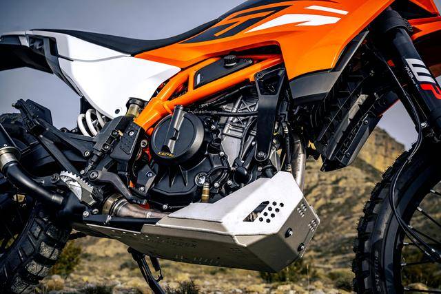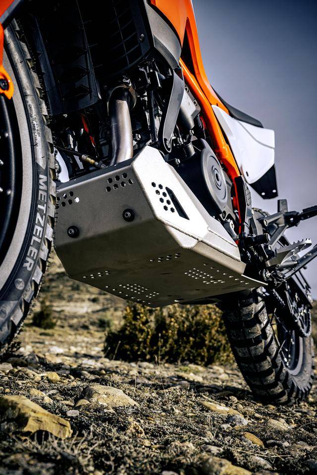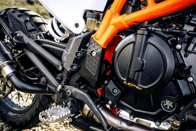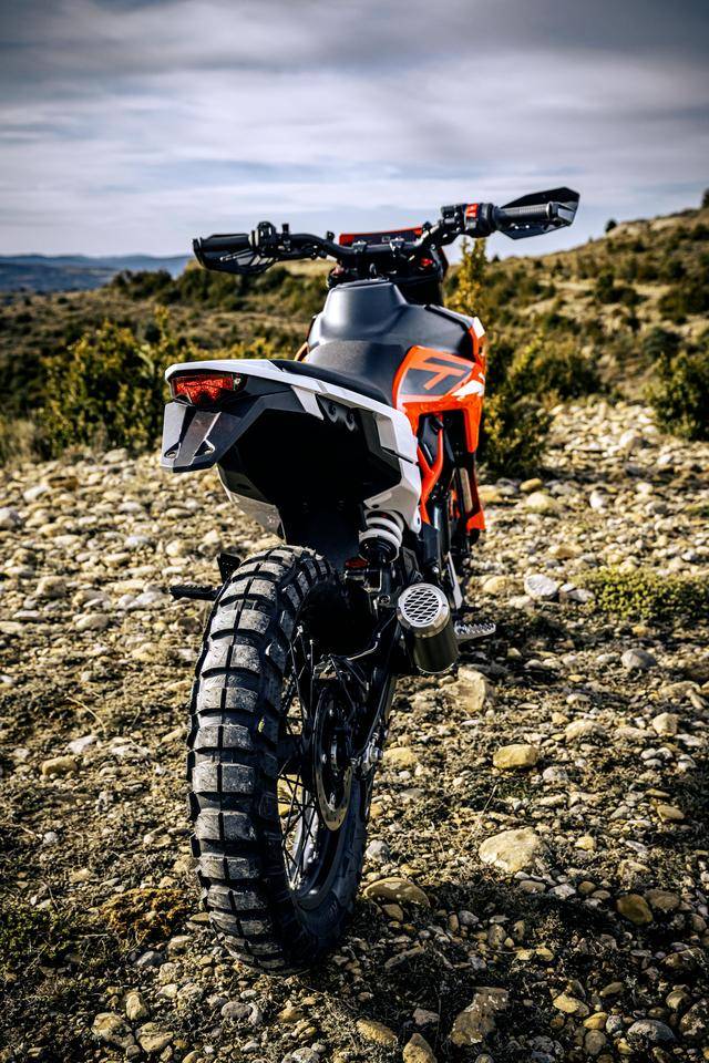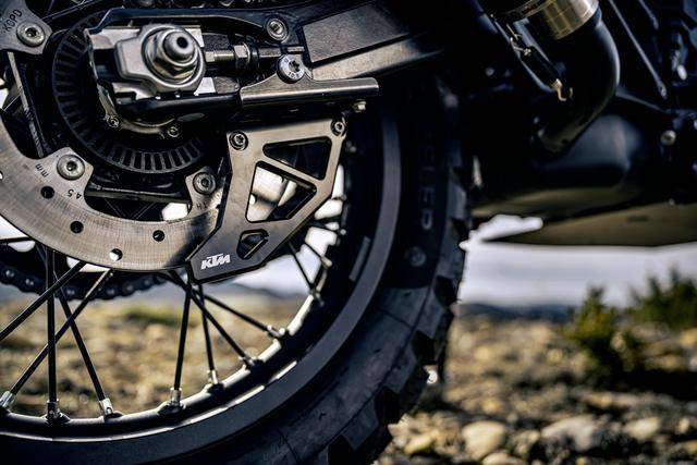 8、前 21、后 18 英寸直徑的車輪標(biāo)配了 Metzeler 象牌的 Karoo 4 輪胎(前 90/90 R 21、后 140/80 R 18);前 285 mm 的單剎車碟、配套軸向安裝的 Bybre 前剎車卡鉗,后面是 240 mm 單剎車碟;