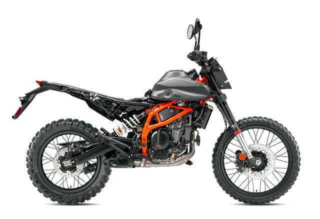 5、專為越野使用而設(shè)計(jì),具有更好的操控性、控制性和穩(wěn)定性的鋼管式車架,車架還為散熱器組件和更大的 21 英寸車輪提供了更大的間隙,腳踏位置也針對(duì)騎手在越野路段的騎行環(huán)境進(jìn)行了優(yōu)化;