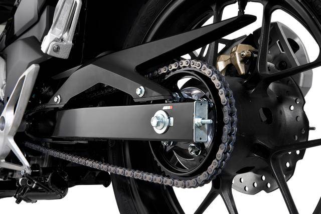 車體方面,采用一副鋼管制、帶雙加強肋的彎樑式車架,有著上一代超級跑車 CBR1000RR 外觀風格的前臉和前大燈造型;正立式的前叉,前后碟式的制動系統(tǒng)、標配了前輪 ABS,帶檔位顯示的 LCD 小型數(shù)字式儀表板,全 LED 的燈光系統(tǒng),直徑為 17 英寸的前后車輪,容量為 4.5 公升的油箱,全車整備重量為 123 公斤。