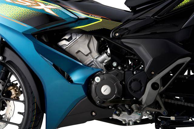 配置上,2025 RS-X Winner 勝利者搭載一副來自 CBR150R 的四沖程單氣缸、DOHC 四氣閥的發(fā)動機,缸徑、行程為 57.3 mm x 57.8 mm,排氣量 149.2 cc,配備了 PGM-FI 電子燃油噴注系統(tǒng)、六檔的變速齒輪箱,峰值動力輸出 11.8 kw/9000 rpm(2025 CBR150R 的峰值動力輸出為 12 kw)。
