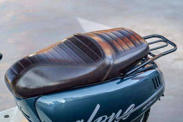 在細(xì)節(jié)裝飾這款車也下了功夫,亮漆面和座墊的質(zhì)感很有格調(diào),配合腳踏板的撞色設(shè)計,復(fù)古和時尚風(fēng)格并存。鍍鉻風(fēng)格的后視鏡和排氣管罩在陽光下閃耀著金屬光澤,彰顯出復(fù)古的優(yōu)雅氣質(zhì)。此外,這款車還采用了毛毛蟲坐墊的設(shè)計,搭配做舊處理的棕色皮革,確實(shí)非常有復(fù)古的味道。