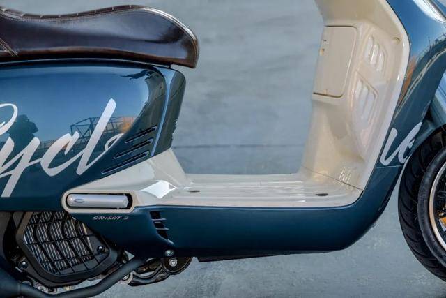 作為一款復(fù)古風(fēng)格的150踏板車,米蘭和賽科龍自家的RT3E在外觀上有幾分相似,整體造型既保留了復(fù)古韻味,又融入了現(xiàn)代元素,中文名米蘭更是有非常濃厚的文藝氣息。相比RT3E,前臉增加了仿進(jìn)氣口設(shè)計,增加更多層次感,全新的頭燈組造型辨識度很高,尾燈則采用了矩形設(shè)計。除了頭燈和尾燈外,這款車在很多地方都能看到矩形元素,比如方形的手把按鍵,長方形的儀表,長方形的前儲物空間蓋板,甚至座墊后部都是方形的,增加這款車的復(fù)古元素。