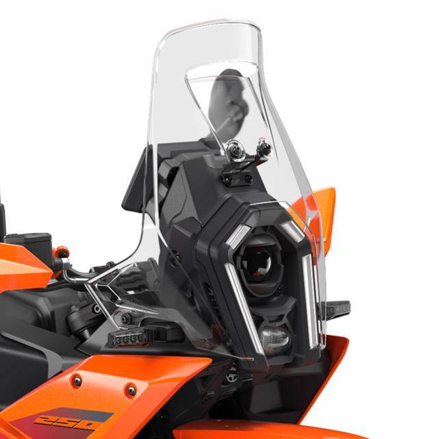 在外觀設(shè)計(jì)上,2025款250 Adventure采用了與390 Adventure相同的家族化設(shè)計(jì)語言,前端配備了半整流罩和更高的風(fēng)擋,不僅提升了風(fēng)阻保護(hù)性能,還增強(qiáng)了車輛的拉力風(fēng)格。車尾線條更加流暢,整體造型更具冒險(xiǎn)氣息。