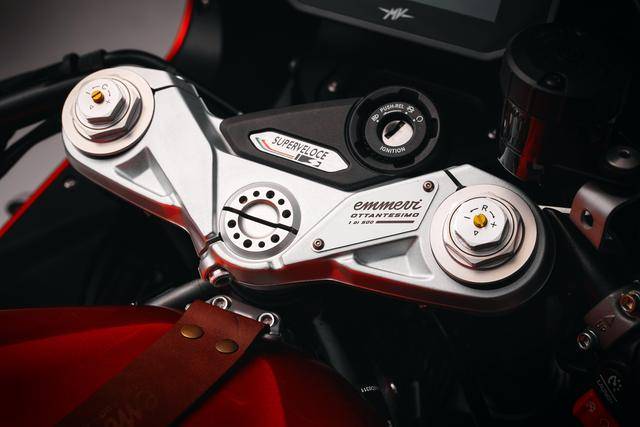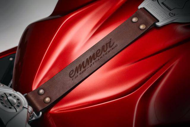 六個車型均各限量生產(chǎn) 500 輛。作為限量版的紀(jì)念車型,六個車型的上三星(上前叉三角臺)都有激光打刻的 emmevi OTTANTESIMO 字樣和每輛車的紀(jì)念編號,emmevi 是 MV 的意大利語拼音,而 Ottantesimo 意大利語 “ 八十 ” 的意思。