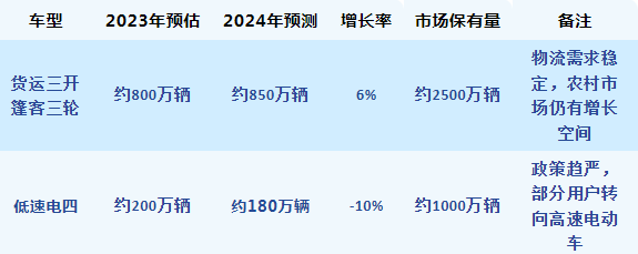 據(jù)不完全了解,2024年貨運(yùn)三開/篷客三輪、低速電四全年銷量同比2023年發(fā)生了一些變化: