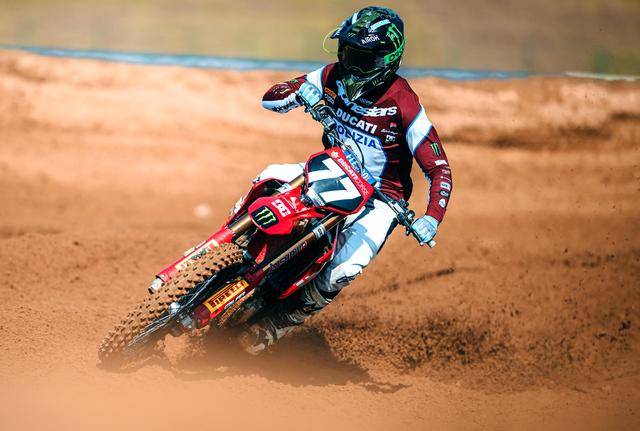 與去年的 Desmo450 MX 一樣,作為正式投產(chǎn)前的技術(shù)開發(fā)、測(cè)試環(huán)節(jié),杜卡迪以 Desmo250 MX 工程原型車、而非市售規(guī)格的車輛參賽。在排位賽,盧皮諾拿到了第二的發(fā)車位置;第一節(jié)的正式比賽,盧皮諾在爭奪第二名的時(shí)候摔倒,扶起賽車重新回到比賽中,最終他以第十名完賽;第二節(jié)比賽,保持著快速節(jié)奏的他,最終拿下了第三名,讓這款原型工程車、在首次亮相就能登上了頒獎(jiǎng)臺(tái)。
