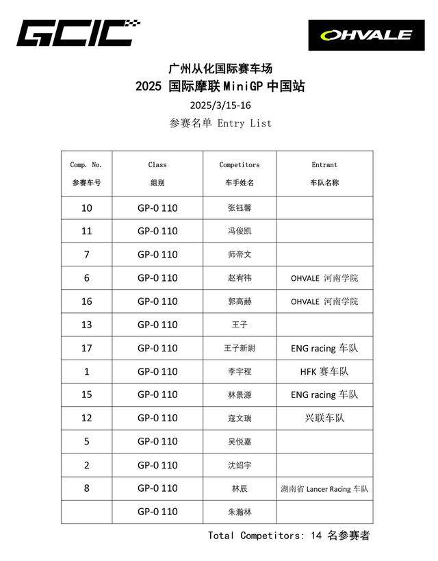 * GCIC Ohvale GP-0 110(參賽者統(tǒng)一使用 Ohvale GP-0 110 的賽車);
