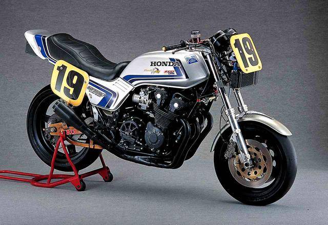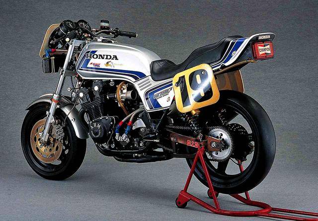 下面的圖片,美國車手斯賓塞(Freddie Spencer)奪得 1982 AMA Daytona 戴通那 100 英里冠軍的 19 號 CB750F 賽車(資料圖片)。