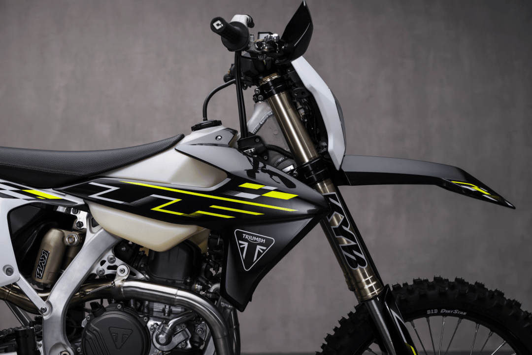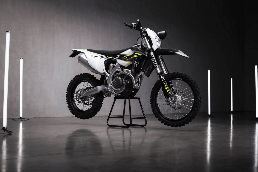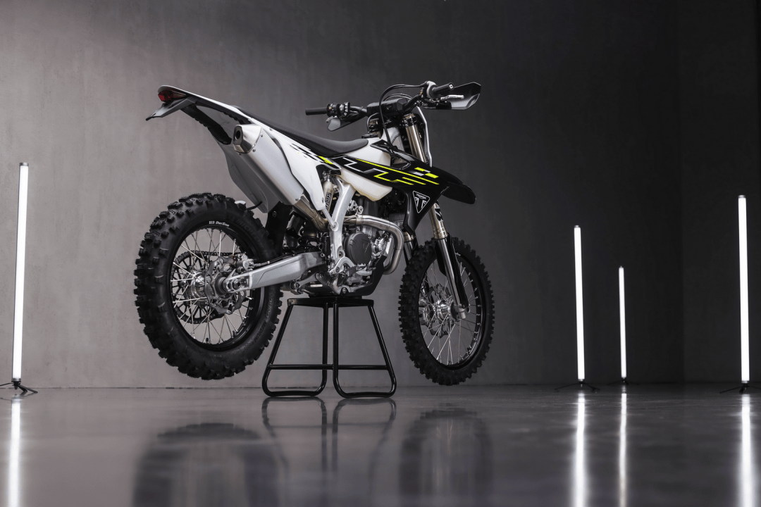 2023 年十一月底的時(shí)候,凱旋摩托發(fā)布了他們?nèi)碌摹儆?MX(Motocross 場地越野)規(guī)格的市售越野賽車 TF 250-X;到全年十月初的時(shí)候,凱旋 MX 領(lǐng)域里的第二個(gè)車型、TF 450-RC 版推出,凱旋完成了他們?cè)谑惺墼揭百愜嚴(yán)锏幕鹃]環(huán)、覆蓋了對(duì)應(yīng)主要競賽級(jí)別的細(xì)分市場。