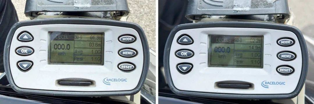 制動方面原廠配備西戶制動卡鉗,前輻射對四活塞卡鉗配直推上泵,后單活塞卡鉗,制動配置上雖不是頂尖大牌,但實際的體驗上卻堪比大品牌的制動性,先說數(shù)據(jù)60-0的最好成績?yōu)?4.9m,30-0為3.6m,這個數(shù)據(jù)在我們測試過的中大排跨騎車型排前列,比大多數(shù)測評過的250-450車型都要明顯好。