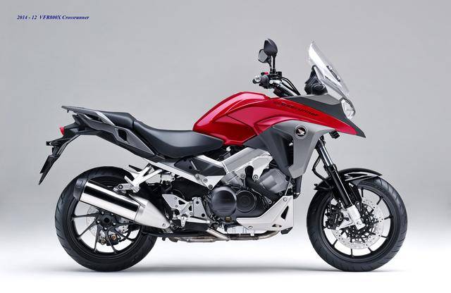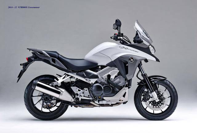 13、在 2010 年的 EICMA 米蘭車展上,Honda 展示了基于 VFR800F 延伸而來的、采用了運動探險車風格的 VFR800X Crossrunner 概念車。次年,廠方正式推出了全新的 VFR800X Crossrunner,該車共享了 2002 - 2013 VFR800F 的主要機械組件,發(fā)動機的最大動力輸出下調至 101 匹;鋁合金制的車架、后單搖臂,六活塞的前剎車卡鉗等,也是從 VFR800F 移植過來;