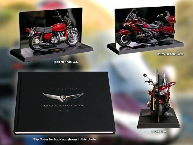 為了幾年 Gold Wing 金翼車系進(jìn)入五十周年,歐美市場的首批 2025 金翼系列五十周年紀(jì)念版的車主,都有機(jī)會(huì)獲贈(zèng)一個(gè)按比例的獨(dú)家限量版復(fù)制品模型,這個(gè)模型的其中一面是第一代的 GL1000,另一面是最新的 2025 款 Gold Wing Tour 金翼。