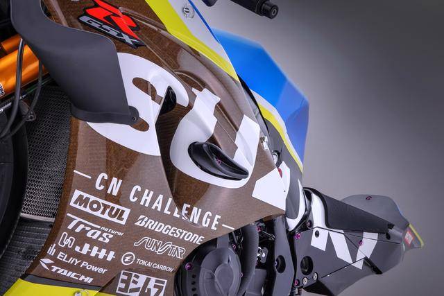 廠方稱,Suzuki CN 挑戰(zhàn)者車隊(duì)將促進(jìn)各種可持續(xù)項(xiàng)目的競(jìng)賽機(jī)器開發(fā),包括從去年 40% 的生物來源燃料、轉(zhuǎn)變?yōu)榻衲?100% 的可持續(xù)燃料。他們將與合作伙伴公司共同應(yīng)對(duì)挑戰(zhàn),(目標(biāo)是)超越去年的第八名。為了能夠在耐力賽的苛刻條件下、通過競(jìng)爭(zhēng)從而進(jìn)一步加快環(huán)保性能技術(shù)的發(fā)展,車隊(duì)將以更高的目標(biāo)為方向,以求為未來的產(chǎn)品提供技術(shù)反饋。