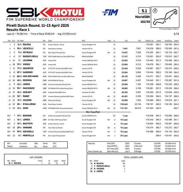 FIM WorldSBK 超級(jí)跑車世界錦標(biāo)賽(FIM Superbike World Championship)2025 賽季第三站的比賽,上周(四月 11 - 13 日)在荷蘭的 TT 艾森(Assen TT)賽車場(chǎng)舉行。
