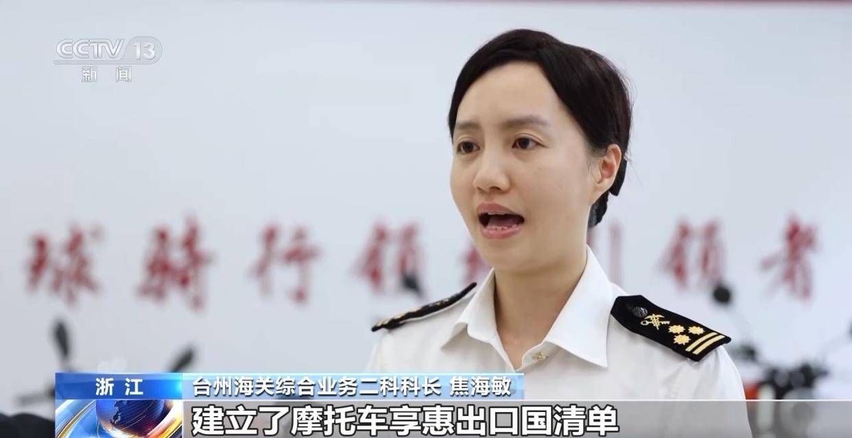 臺(tái)州海關(guān)綜合業(yè)務(wù)二科科長(zhǎng) 焦海敏:建立了摩托車(chē)享惠出口國(guó)清單,從關(guān)稅減讓、原產(chǎn)地規(guī)則等方面為企業(yè)提供精準(zhǔn)指導(dǎo),幫助企業(yè)用好用足政策,加快拓展周邊市場(chǎng)。