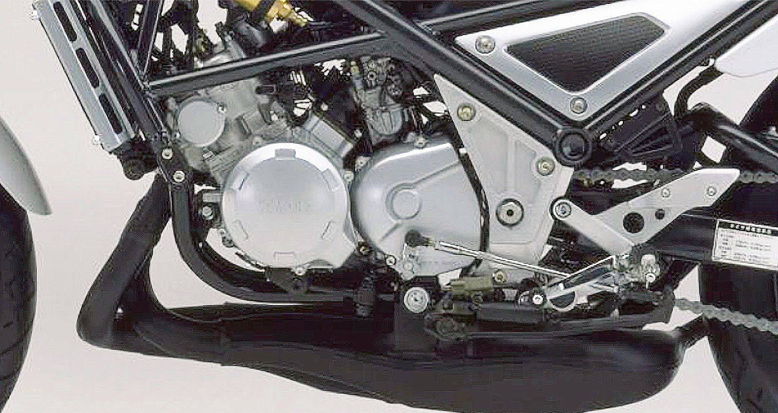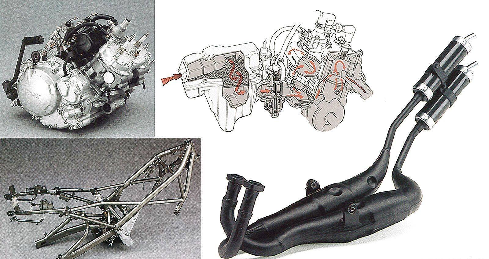除了輸出兇猛,它的吸氣系統(tǒng)也很講究。 搭載Y.E.I.S.吸氣擴(kuò)壓室、Y.P.V.S.可變排氣閥系統(tǒng),搭配大容量的排氣膨脹室,整體出力曲線不只炸,還很有厚度。 而那個(gè)交叉雙出排氣管、一體式鋼管車(chē)架加上拉長(zhǎng)的油箱設(shè)計(jì),整臺(tái)車(chē)視覺(jué)上就像個(gè)賽道里不笑的壞小子,完全走硬派路線。