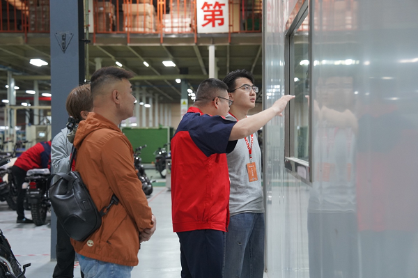 活動伊始,用戶在工程師的陪同下,深入生產(chǎn)車間。在這里,從發(fā)動機精密組裝,到整車的嚴格質(zhì)檢,用戶全程見證車輛誕生的每一個環(huán)節(jié)。流水線上,高效運轉(zhuǎn)的智能化設(shè)備、精準的焊接工藝、嚴苛的檢驗標準,以及技術(shù)團隊對細節(jié)的把控,讓用戶直觀感受到鑫源摩托的匠心精神。