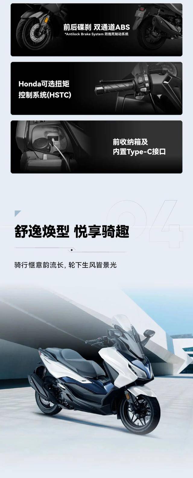 動(dòng)力方面,本田NSS350依舊搭載經(jīng)典的330mL單缸水冷eSP+發(fā)動(dòng)機(jī),最大功率可達(dá)21.6kW,峰值扭矩為31.8N·m,搭配CVT無(wú)級(jí)變速箱,性能穩(wěn)定。這款發(fā)動(dòng)機(jī)在城市通勤和高速巡航中都能提供平順且強(qiáng)勁的動(dòng)力輸出。標(biāo)配雙通道ABS、HSTC牽引力控制系統(tǒng)等安全配置。
