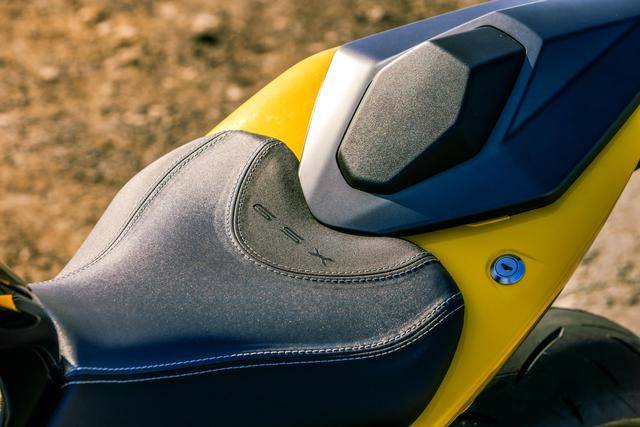 與標(biāo)準(zhǔn)版相比,2025 GSX-8R Kiiro 黃色限量版標(biāo)配了乘客后座外蓋、Gilles 的鋁合金 CNC 加工而成的剎車?yán)瓧U(剎車牛角)、表面采用了淺色處理的前風(fēng)擋、油箱防刮墊,以及帶有 GSX 字樣的雙色鞍座。
