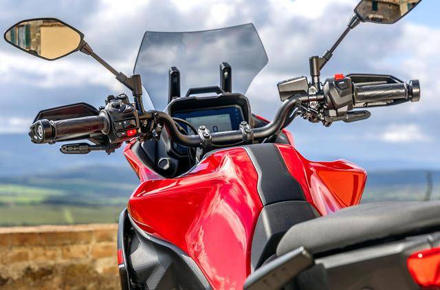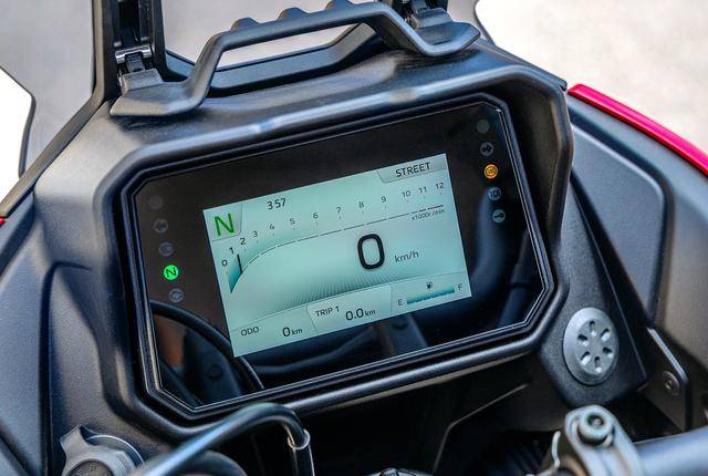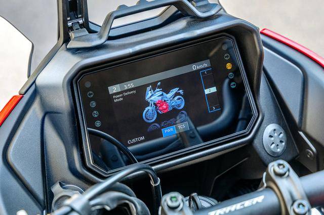 9、新的 5 英寸 TFT 全彩色儀表板,新的車把開關(guān)、車把兩端的護(hù)手罩;此外,更新的部分還有徑向安裝的前剎車卡鉗(2024 款采用軸向安裝的前剎車卡鉗),對應(yīng)新后搖臂的傳動鏈條護(hù)罩等。
