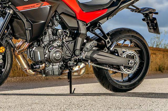 車體方面,采用一副經(jīng)過改進(jìn)的鉆石型管狀車架,經(jīng)過改進(jìn)的懸掛系統(tǒng)等。在設(shè)計和配置上,2025 Tracer 7 、Tracer 7 GT 的主要特點(diǎn)如下: