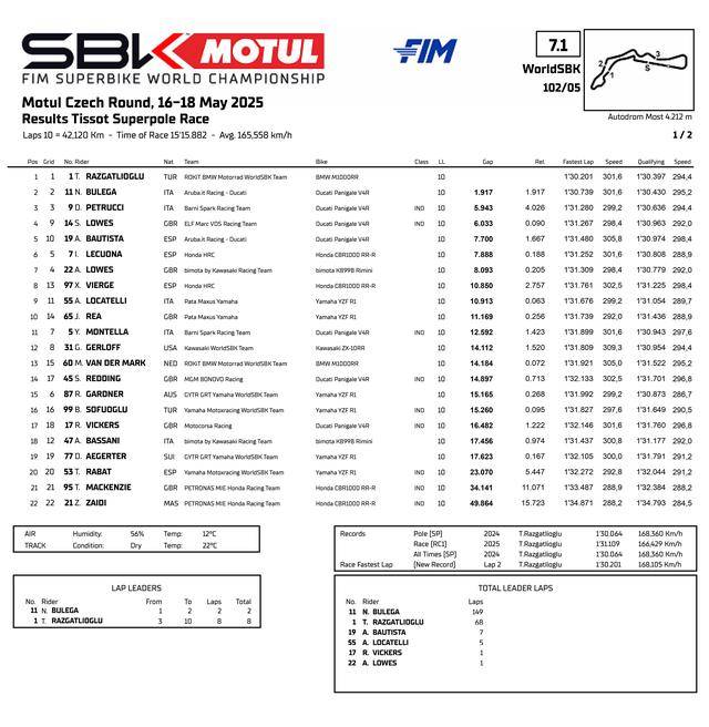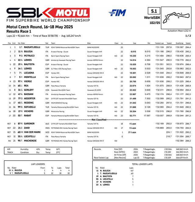FIM WorldSBK 超級(jí)跑車(chē)世界錦標(biāo)賽(FIM Superbike World Championship)2025 賽季第五站的比賽,五月 16 - 18 日、在捷克的莫斯特賽車(chē)場(chǎng)(Autodrom Most)舉行。