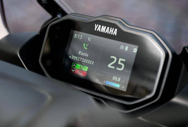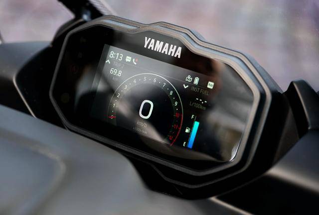 2、新的 4.2 英寸 TFT 全彩色數(shù)字式儀表板,可通過(guò) Yamaha 的 MyRide 手機(jī)應(yīng)用程序、以藍(lán)牙與騎士的智能手機(jī)進(jìn)行連接,從而在儀表板上實(shí)現(xiàn)導(dǎo)航、查看來(lái)電等功能;