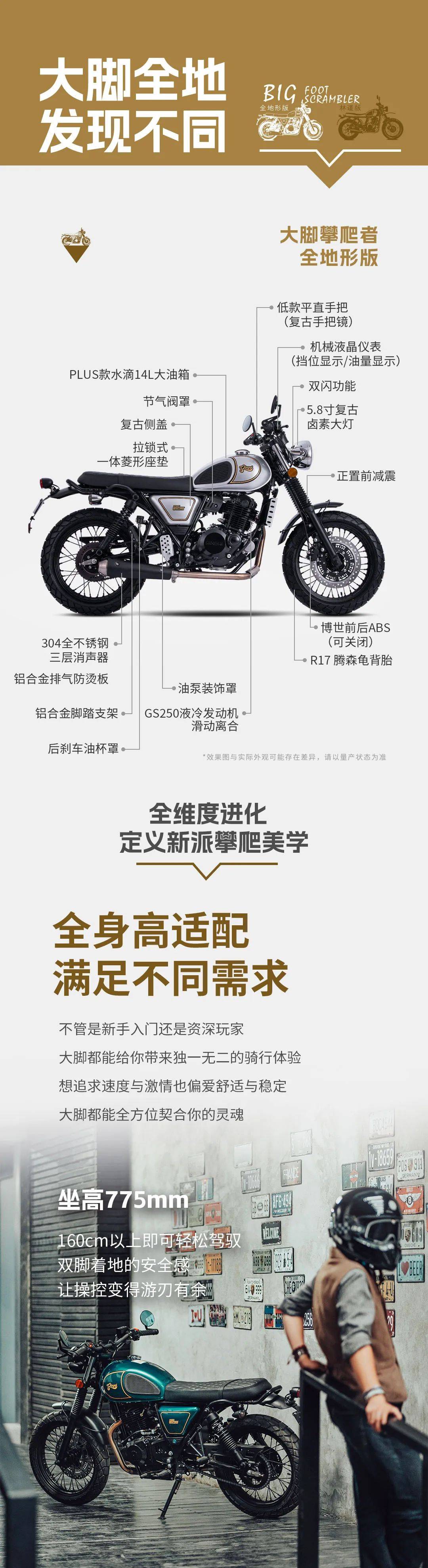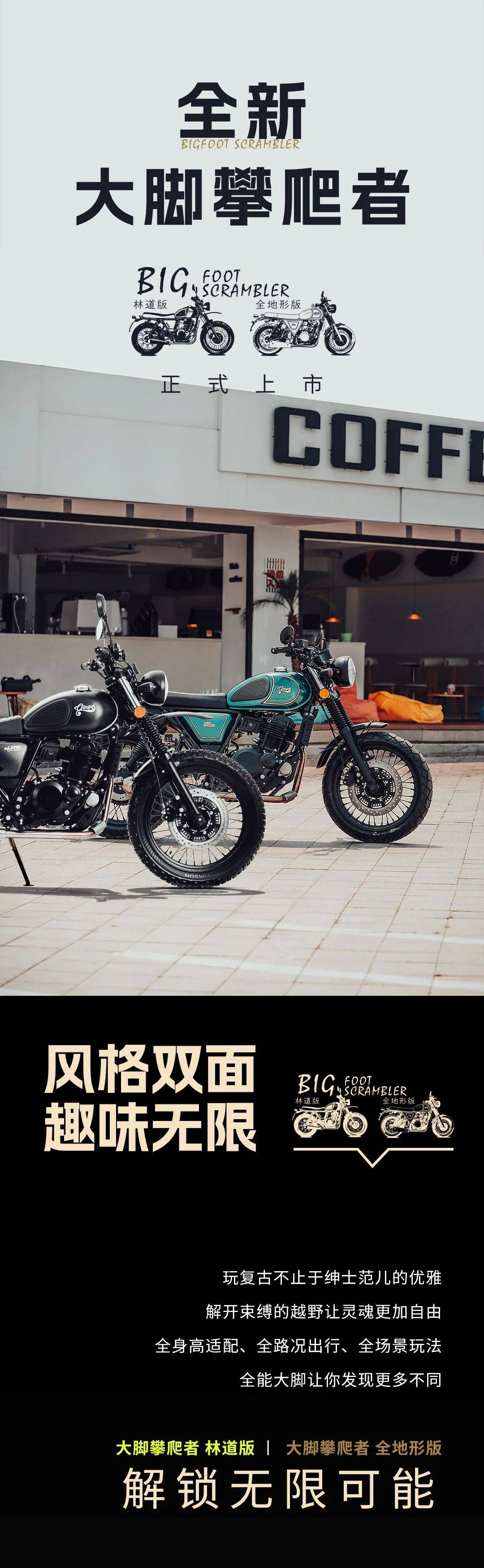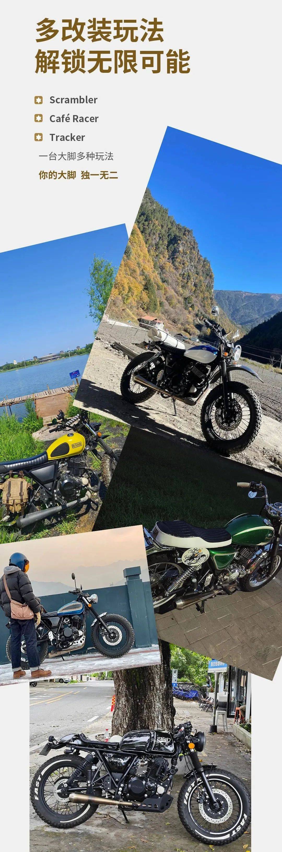 輕騎大腳攀爬,讓你解鎖無限可能,體驗多種玩法,無論是有腔調(diào)的紳士復古攀爬,還是林道穿越、全地形通行,都能被這款車輕松滿足,還有足夠大的改裝空間,僅15000多的售價,性價比很高,喜歡這類攀爬兼復古額機車,一定去試駕體驗。