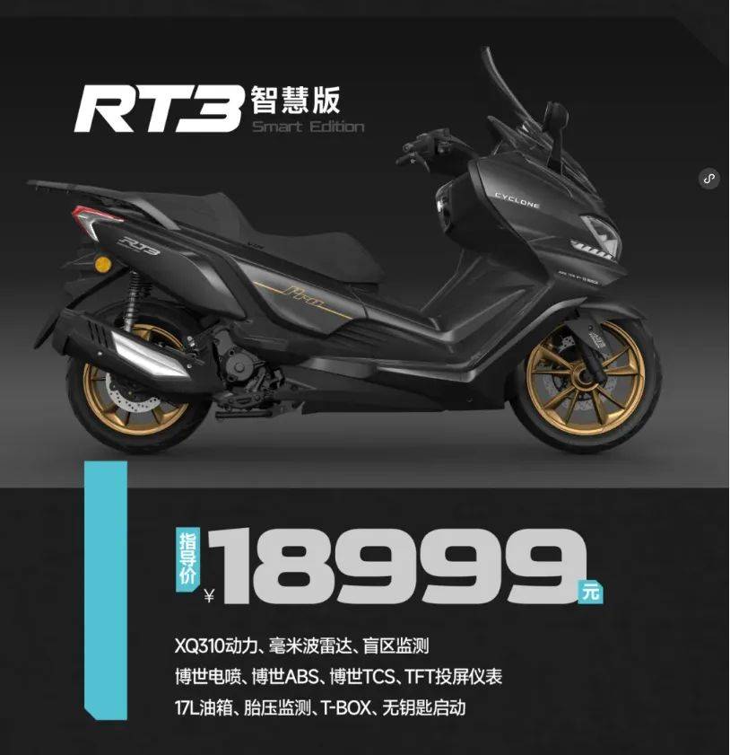 RT3智慧版以“加量又讓利”的策略,重新劃定了300cc級踏板的標(biāo)桿——更強(qiáng)的動力、更智能的防護(hù)、更極致的續(xù)航,加上極具殺傷力的價(jià)格,無疑將成為進(jìn)階騎士的首選座駕。