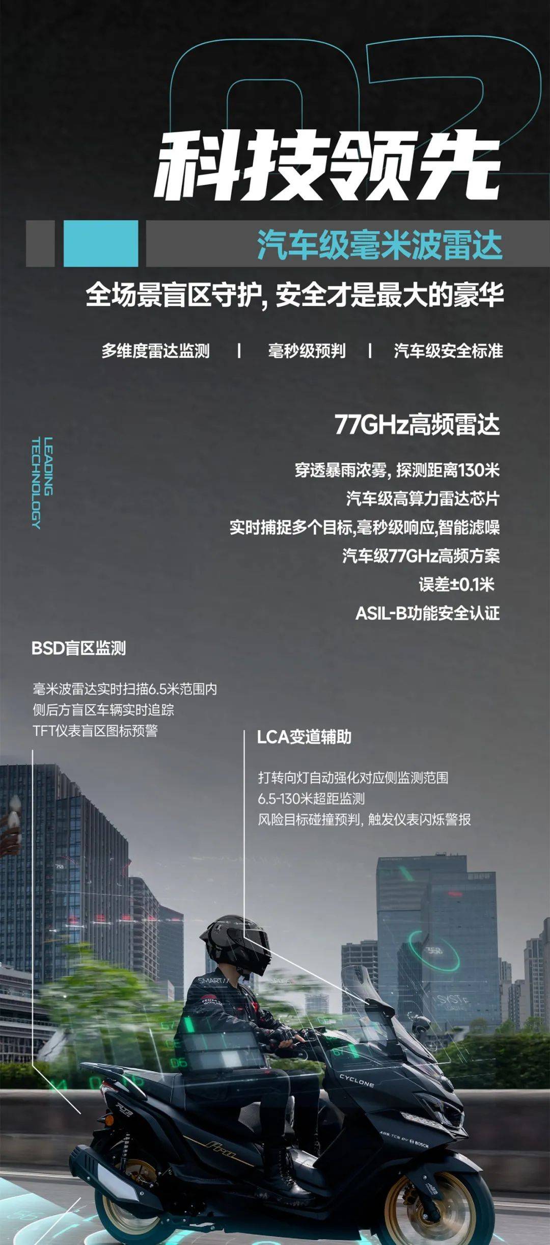 RT3智慧版開創(chuàng)性地引入77GHz毫米波雷達(dá)系統(tǒng),成為全球首款配備汽車級主動安全的中級踏板。配合博世ABS+博世TCS+博世電噴組成的“德系安全三角”,可實(shí)時(shí)監(jiān)測后方盲區(qū),大幅降低碰撞風(fēng)險(xiǎn)。