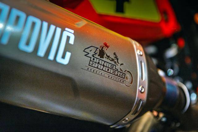 5、帶有桑德斯特別版字樣的 Akrapovic阿克拉波維奇鈦合金制消聲器;