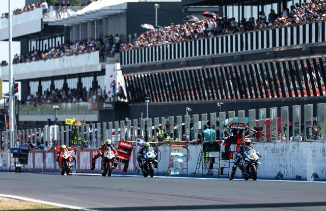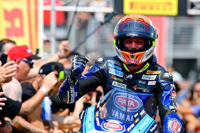 在后面目睹了碰撞、駕駛 1 號(hào)車的土耳其車手拉格里奧盧(Toprak Razgatlioglu),最終輕松奪得了這場(chǎng)短途賽的第一;后面,駕駛 22 號(hào)車的英國車手洛維斯(Alex Lowes)落后 4 秒多、拿到了第二,為 Bimota 比摩塔自 2000 年以來、重新擠進(jìn)三甲的位置;駕駛 55 號(hào)車的意大利車手洛卡泰利(Andrea Locatelli)獲得了第三。