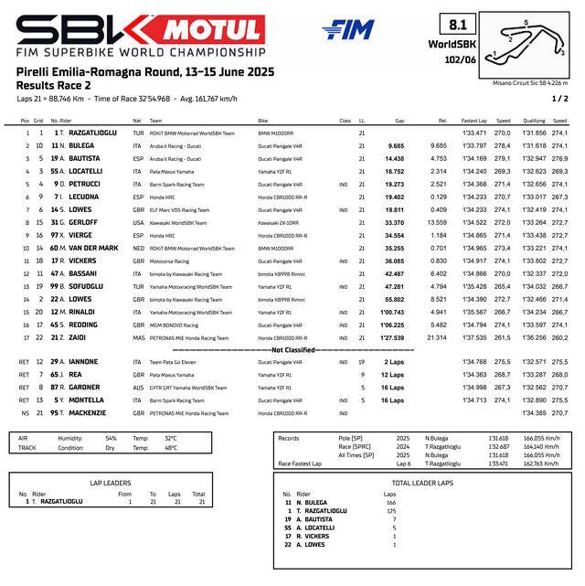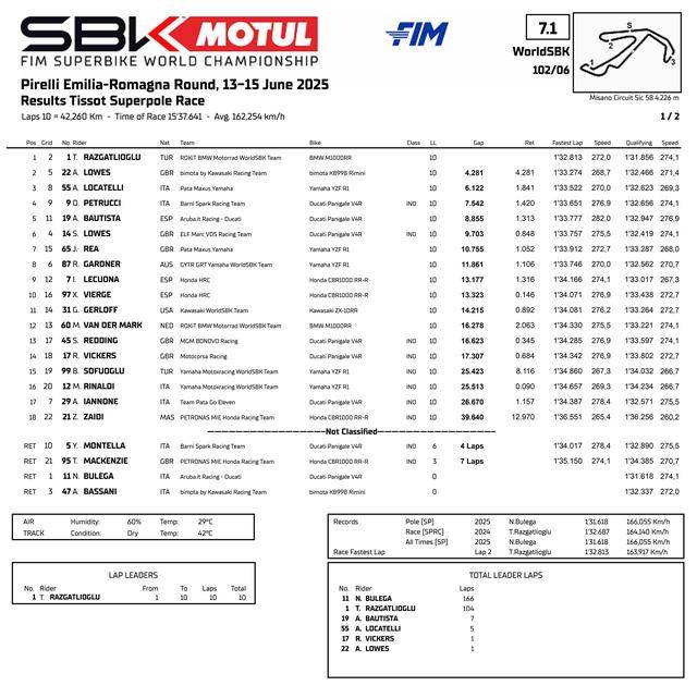 FIM WorldSBK 超級(jí)跑車世界錦標(biāo)賽(FIM Superbike World Championship)2025 賽季第六站的比賽,六月 13 - 15 日、在意大利/圣馬力諾的米沙諾賽車場(chǎng)(Misano World Circuit “ Marco Simoncelli ”)舉行。