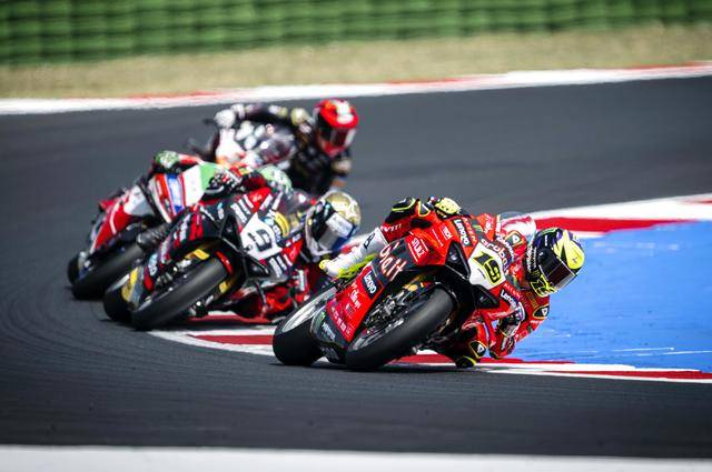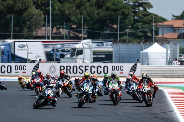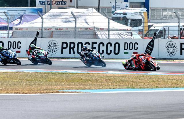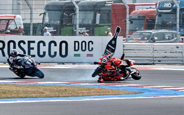 WSBK 級(jí)別在周日(六月 15 日)的競(jìng)賽環(huán)節(jié)是超級(jí)排位賽正賽(Super Pole Race)和第二節(jié)正賽。首先進(jìn)行的超級(jí)排位賽正賽、賽程為 10 圈。起步之后第 1 圈的一號(hào)彎,駕駛 47 號(hào)車的意大利車手巴薩尼(Axel Bassani),企圖從后硬插入前面帶頭、駕駛 11 號(hào)車的意大利車手布雷加(Nicolo Bulega),但他失去了對(duì)賽車的控制并滑倒、之后直接鏟倒了布雷加,結(jié)果雙雙摔車并退出了比賽。賽后,F(xiàn)IM WorldSBK 賽事管理委員會(huì)對(duì)這次碰撞進(jìn)行了調(diào)查,并以不負(fù)責(zé)任地騎行、對(duì)巴薩尼作出了處罰:他需要在接下來的第二節(jié)正賽里,接受兩個(gè)長圈的處罰。