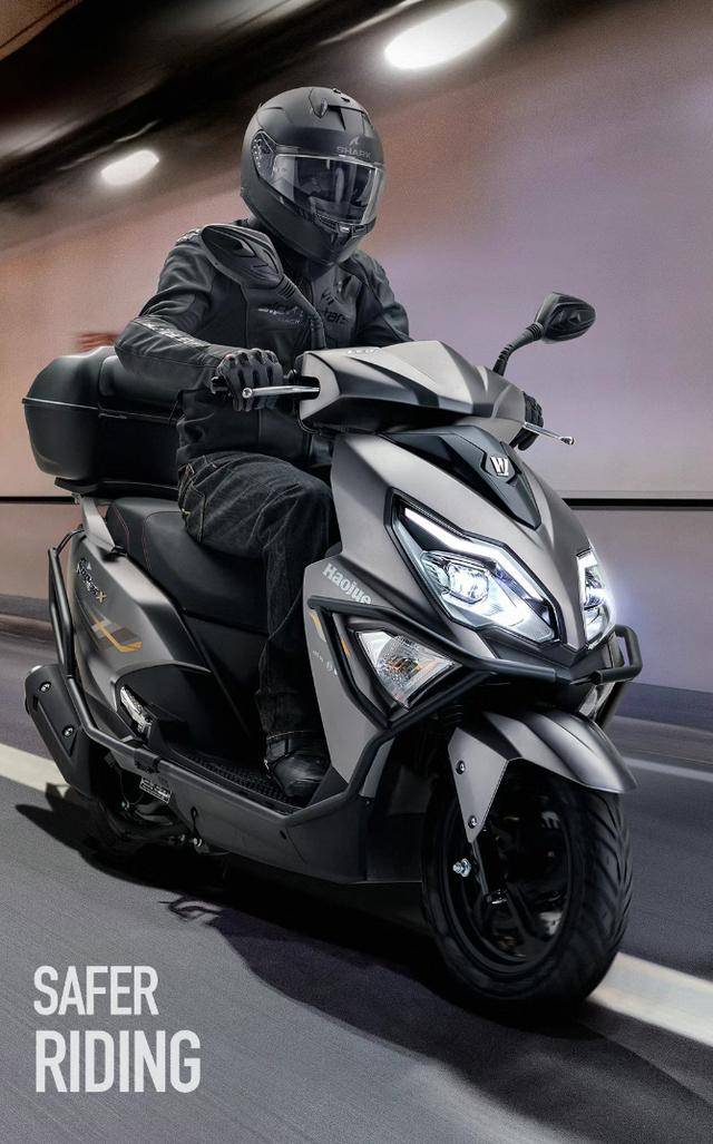 AFR125X最直觀的改變來自燈光系統(tǒng)。新車搭載定制版德國歐司朗LED雙透鏡大燈,其照射距離、覆蓋范圍及均勻度均顯著優(yōu)于老款。尾燈部分則采用“戰(zhàn)機(jī)式”設(shè)計,面積增大且亮度提升。另外配合新的外觀細(xì)節(jié)與全新貼花,整車辨識度大幅提升。