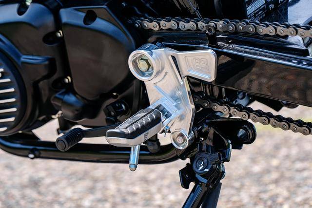 硬件方面的升級,采用了高位安裝的定制消聲器,開放式設(shè)計的錐形空氣濾清器,鋼制的前后剎車油管等。