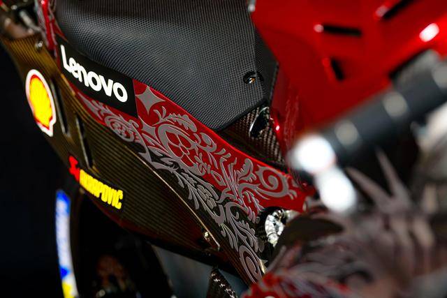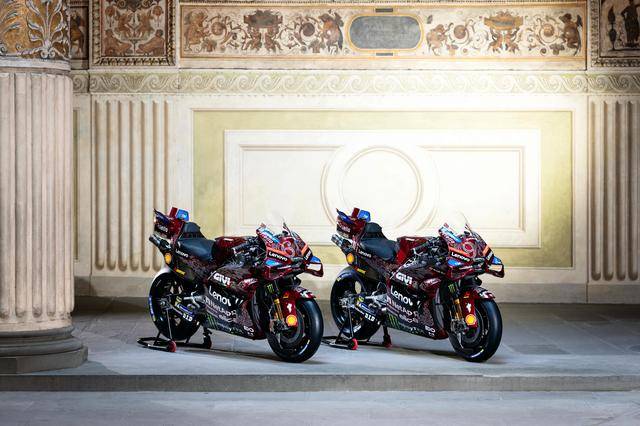 正賽開始前,Ducati杜卡迪MotoGP 工廠車隊(duì),發(fā)布了他們?cè)谶@次主場(chǎng)比賽中、所采用的特殊圖案:以意大利文藝復(fù)興作為靈感,由當(dāng)?shù)刂O(shè)計(jì)師德魯?shù)希ˋldo Drudi)和歷史學(xué)家 Marcello Simonetta 合作的設(shè)計(jì)。