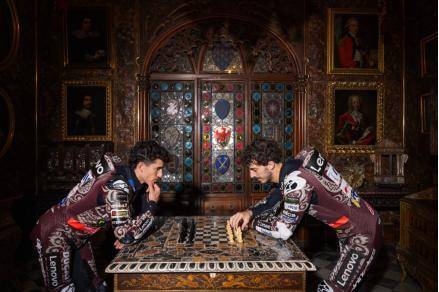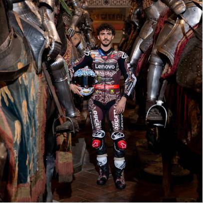 弗朗切斯科·巴尼亞亞(#63)與馬克·馬奎茲(#93)化身當(dāng)代騎士,駕馭代表意大利賽道精神的 Desmosedici GP 賽車,在賽場(chǎng)上展開一場(chǎng)融合力量與智慧的較量。賽車上的獅子與狐貍圖案,取材自達(dá)芬奇繪制的盔甲紋樣,分別象征勇猛與機(jī)智——正如馬基雅維利在《君主論》中所述,唯有兼具獅子的強(qiáng)悍與狐貍的睿智,方能在激烈競(jìng)爭(zhēng)中脫穎而出。