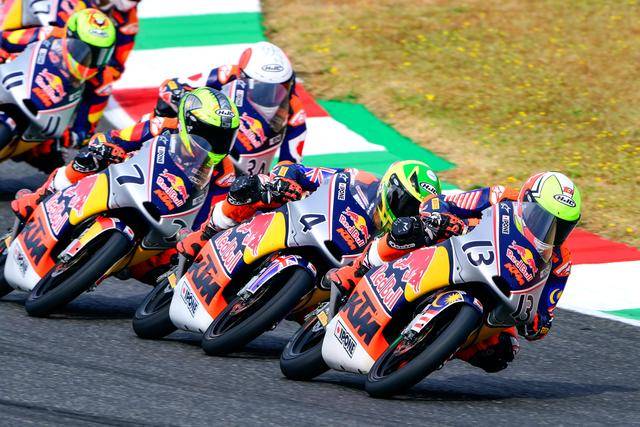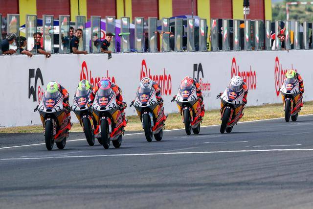 紅牛 MotoGP 新秀杯創(chuàng)辦于 2007 年,明年將是該項(xiàng)賽事進(jìn)入二十周年。該項(xiàng)賽事一直采用 KTM提供的、統(tǒng)一規(guī)格的賽車,最初是搭載兩沖程發(fā)動(dòng)機(jī)的 GP125 賽車,到 2012 年開始至今、換成了 KTM Moto3 規(guī)格的四沖程賽車。從創(chuàng)辦至今,該項(xiàng)賽事為 WGP/MotoGP 世界錦標(biāo)賽輸送了大量具潛力的車手,稱得上是 Road to MotoGP “ 通往 MotoGP 之路 ” 的最后一個(gè)程序。而當(dāng)前 MotoGP 三個(gè)級(jí)別里面,也有很多自紅牛 MotoGP 新秀杯出身的車手。