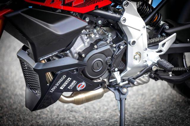 車體采用一副復(fù)合結(jié)構(gòu)的車架,倒立式的前叉、單筒式后減震,全 LED 的燈光系統(tǒng),5 英寸 TFT 全彩色儀表板,Byber 配套的前后碟式制動(dòng)系統(tǒng)、雙通道的 ABS(可選裝彎道 ABS),容量為 12.5 公升的油箱,干燥重量為 129 公斤。