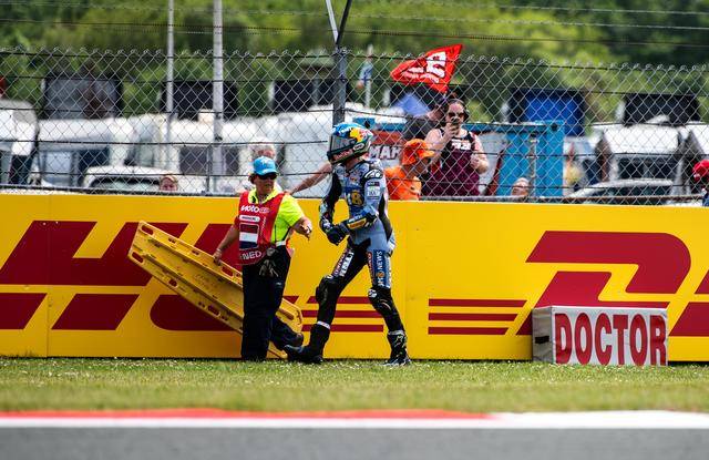 MotoGP 級(jí)別周日(六月 29 日)進(jìn)行的正賽、賽程為 26 圈。比賽的前 5 圈,前面五、六位車手的近身格斗,為觀眾們呈現(xiàn)了一場(chǎng)短暫而激烈的冠軍爭(zhēng)奪戰(zhàn),也是在這一圈,馬昆斯從隊(duì)友巴納亞手上、奪回了領(lǐng)先位置;第 6 圈,小馬昆斯與 37 號(hào)車的西班牙車手阿科斯塔(Pedro Acosta)發(fā)生擦碰、并導(dǎo)致發(fā)生意外而退賽,賽后,小馬昆斯確認(rèn)左手骨折。