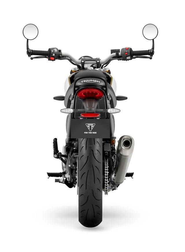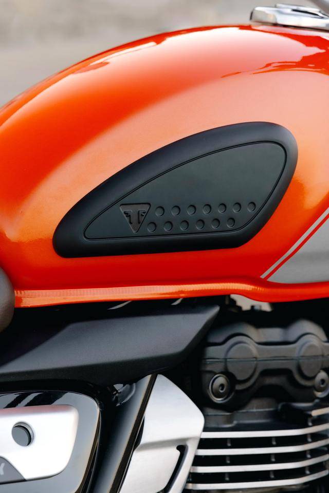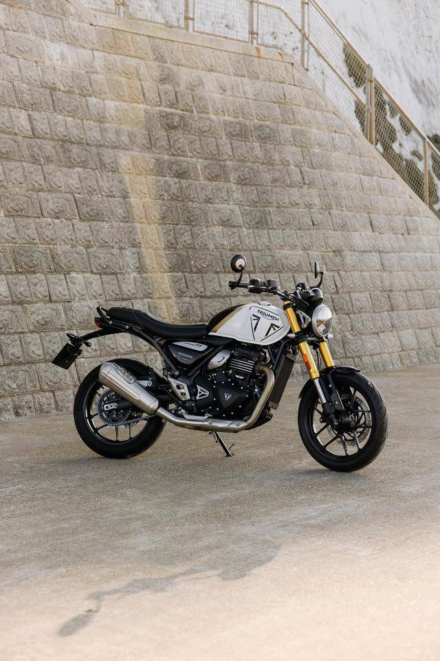 3、復(fù)古街車風(fēng)格的 Speed 400,采用了行程相對較短(前 140 mm、后 130 mm)的懸掛系統(tǒng);790 mm 的鞍座高度、1377 mm 的軸距;直徑為 17 英寸的前后車輪、標(biāo)配了公路型的輪胎。