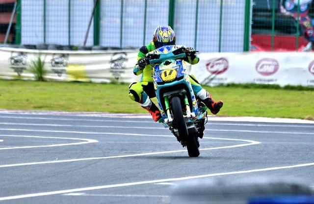 賽前的排位,經(jīng)驗(yàn)豐富、駕駛標(biāo)志性 17 號(hào)車的薛文?。ˋ 組)以破賽道紀(jì)錄的 56.74 秒圈速(舊紀(jì)錄為 1 分 05.194 秒),拿到了第一節(jié)正賽的排頭位發(fā)車。在尚未完全干透地面之下展開的第一節(jié)比賽,他順利奪得了全場和組別的第一;第二節(jié)比賽,他與對(duì)手激戰(zhàn)全場,最終也拿到了全場和組別的第一。綜合兩節(jié)比賽的成績,薛文俊奪得了 2025 偉業(yè)達(dá)杯 - 廣東省場地摩托車錦標(biāo)賽 廣州從化站、電車公開組 A 組的冠軍,繼四月份的恩平站之后,在 2025 偉業(yè)達(dá) GP 的電車 A 組取得了兩連勝。