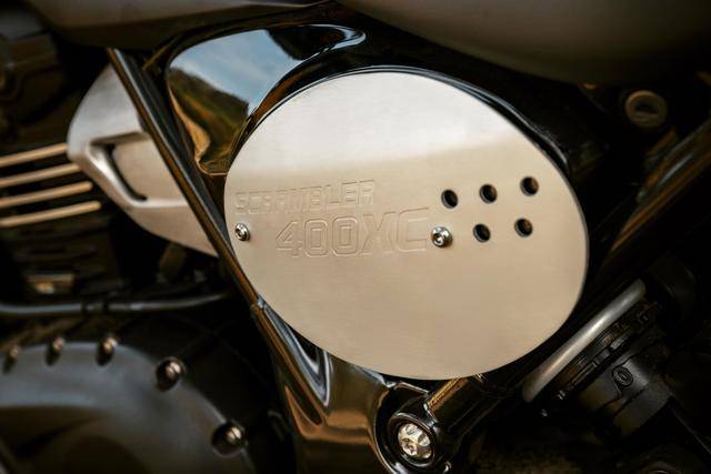 2025 Scrambler 400 XC 復(fù)古越野基于在 2023 年首次發(fā)布的 Scrambler 400 X 修改而成,與 Scrambler 400 X 和 Speed 400 共享了一副相同的水冷四沖程單氣缸、DOHC 四氣閥 發(fā)動機(jī),排氣量 398.15 cc,配備了電子燃油噴注系統(tǒng)、帶扭矩輔助的離合器(也就是所謂的滑動式離合器)、六檔的變速齒輪箱,最大動力輸出同為 29.4kw(約 40 匹)。