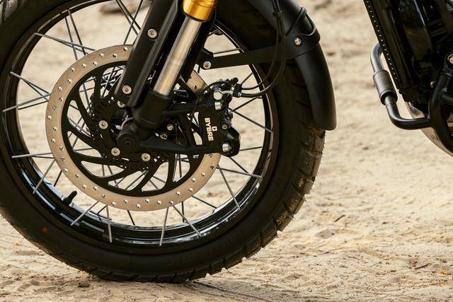 2、前 19、后 17 英寸的車輪,規(guī)格上保持不變,但換裝了專為全路況通過性而設(shè)計(jì) Excel 鋼線式的鋁制輪框(X 版采用了合金鑄造的前后車輪)和無內(nèi)胎結(jié)構(gòu)的 Metzeler 象牌 Karoo Street 輪胎;