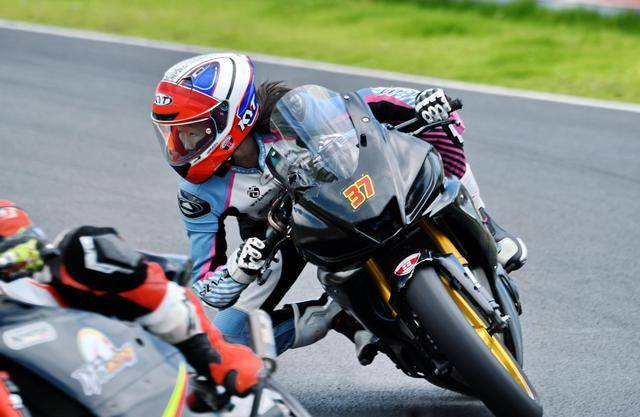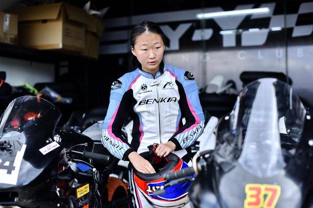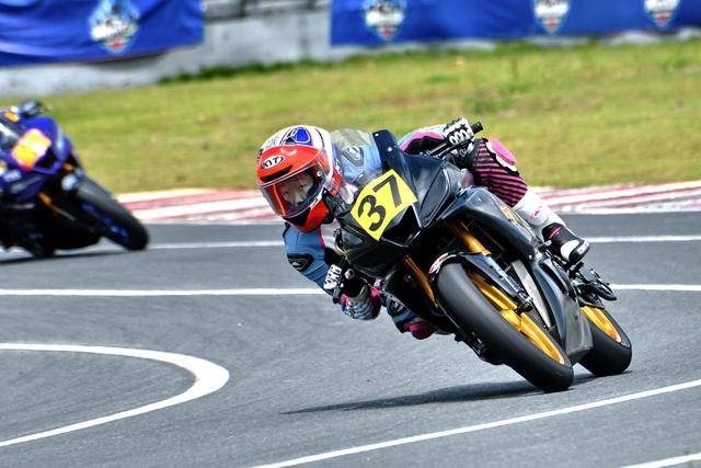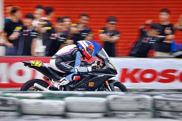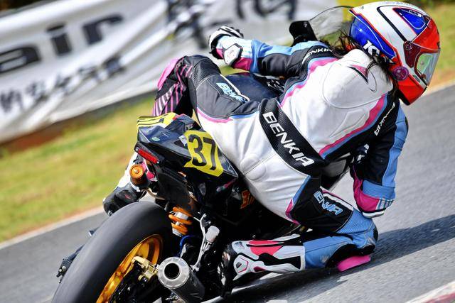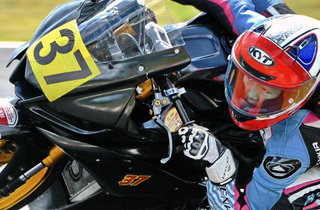 駕駛 37 號賽車的李雨辰,是這場從化站改裝街車公開組(雙缸組)里面的三位女車手之一。此前兩年的比賽里,李雨辰主要參與 MiniGP 組別的比賽,而這場街車組的較量,是我們首次看到她騎上全尺寸的賽車登場。