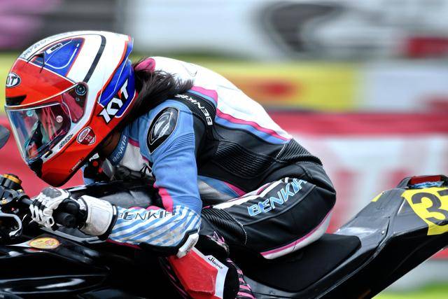 賽前的排位,李雨辰以 58.007 秒的個人最佳圈速,排在了全場的第七位發(fā)車。第一節(jié)比賽在濕地之下展開,憑借著穩(wěn)定的節(jié)奏,李雨辰奪得了全場和組別的第三名;第二節(jié)比賽,成為領先集團里一份子的李雨辰、是比賽里的焦點之一,在這次接近一半車手因為各種狀況而退賽的追逐中,李雨辰在第 9 圈也發(fā)生了摔車,被迫退出了比賽。第二節(jié)比賽里,她跑出了 57.201 秒的個人最佳圈速,比排位賽時快了不少,但對于一個騎乘全尺寸賽車的新手來說,大幅的增速、對極限速度的不斷探索,往往也意味著更高的摔車風險。