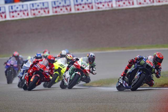 Q2 結(jié)束之后,賽程為 13 圈的 Sprint短途沖刺賽、依舊在濕地之下展開。由于在 1 號彎走大,從排頭位發(fā)車的馬昆斯很快就失去了領(lǐng)先位置,完成第 1 圈比賽之后、他掉到了第五;前面,貝澤奇帶頭,21 號車的意大利車手莫比戴利(FrancoMorbidelli)、20 號車的法國車手夸塔拉羅(Fabio Quartararo)、49 號車的意大利車手吉南托里奧(Fabio Di Giannantonio)緊隨其后。